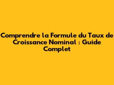 La Formule du Taux de Croissance Nominal