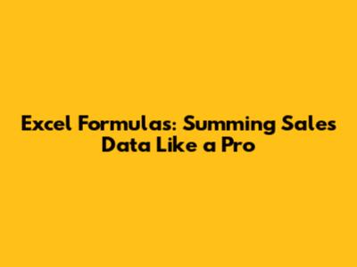 Excel Formulas: Summing Sales Data Like A Pro