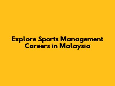 Explore Sports Management Careers In Malaysia