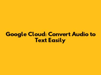 Google Cloud: Convert Audio To Text Easily