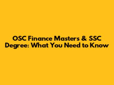 OSC Finance Master's & SSC Degree: What You Need To Know