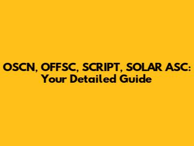 OSCN, OFFSC, SCRIPT, SOLAR ASC: A Comprehensive Guide