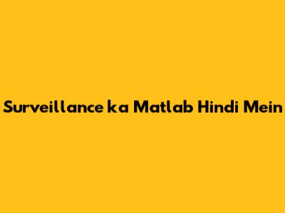 Surveillance Ka Matlab Hindi Mein